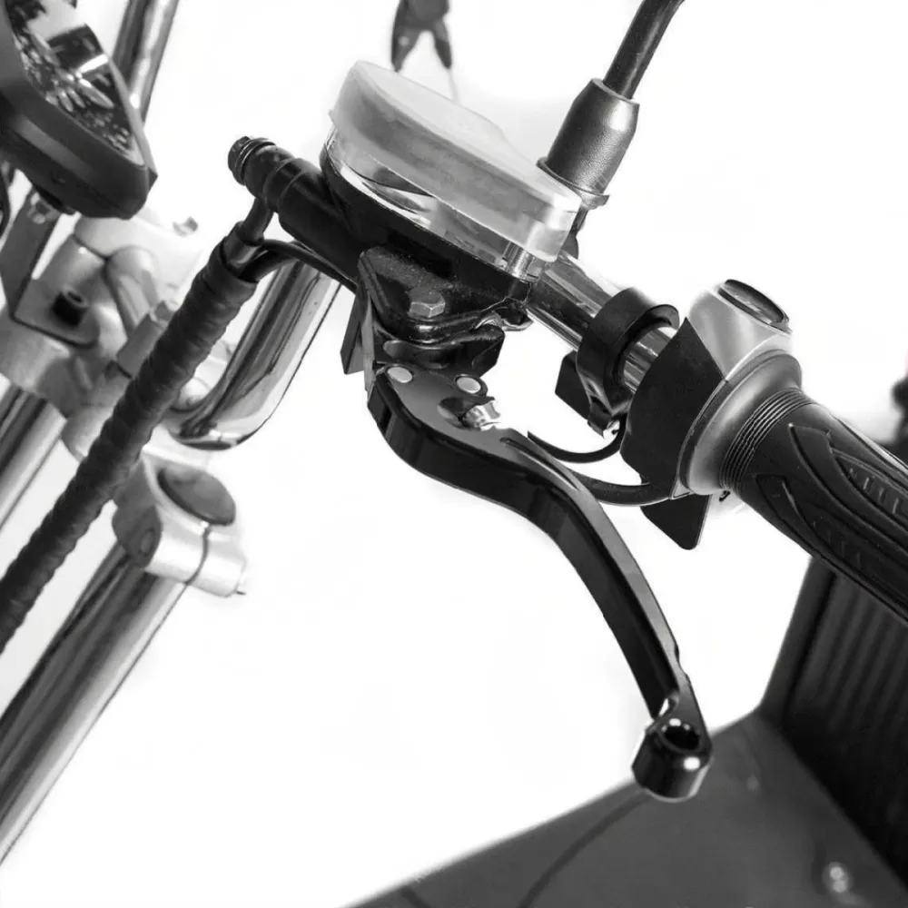 Байк оснащен фирменными запчастями, на передней части размещена широкая фара, обеспечивающая безопасность при езде в вечернее время. Информационный дисплей, установленный на рулевой части, позволяет контролировать скоростные характеристики и заряд АКБ.
