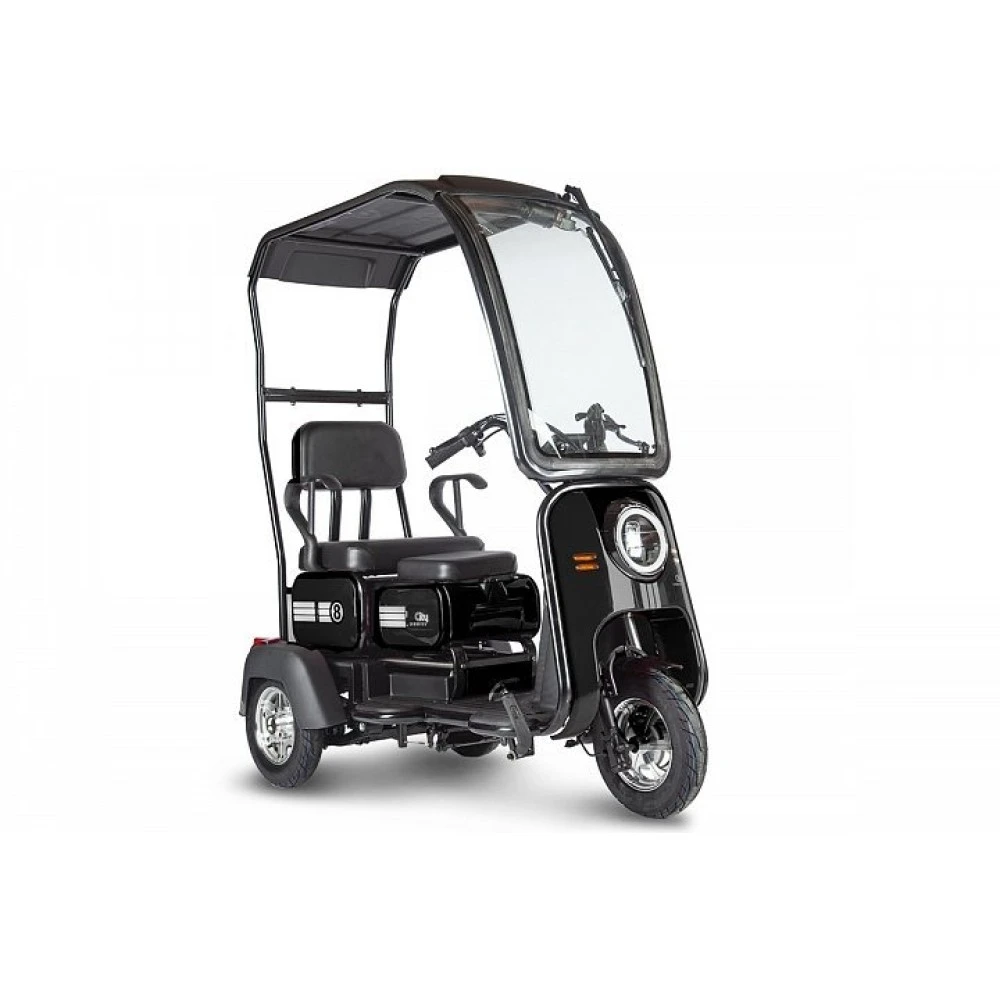 Компактная эргономичная модель для коммерческого использования оснащена лобовым стеклом, крышей, объемным бардачком под сиденьем и с задней части тс. Технические характеристики юркого трицикла представлены двигателем мощностью 800 Вт, способного развивать скорость до 25 км/час и преодолевать 30 км пути.