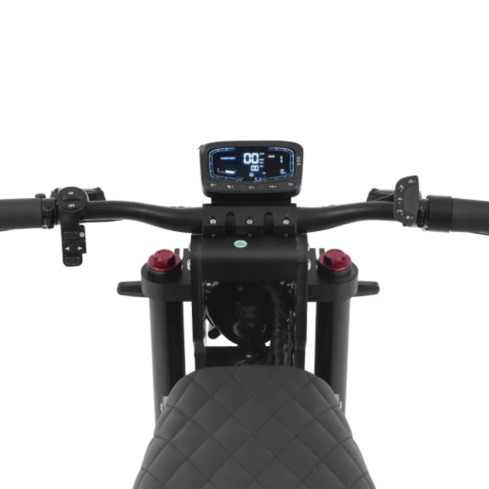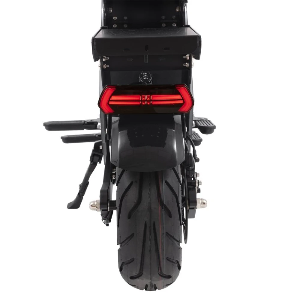 Двигатель мощностью 8000 Вт, питаемый аккумулятором 50Ah / 72V, даёт тебе до 120 км пробега на одном заряде.