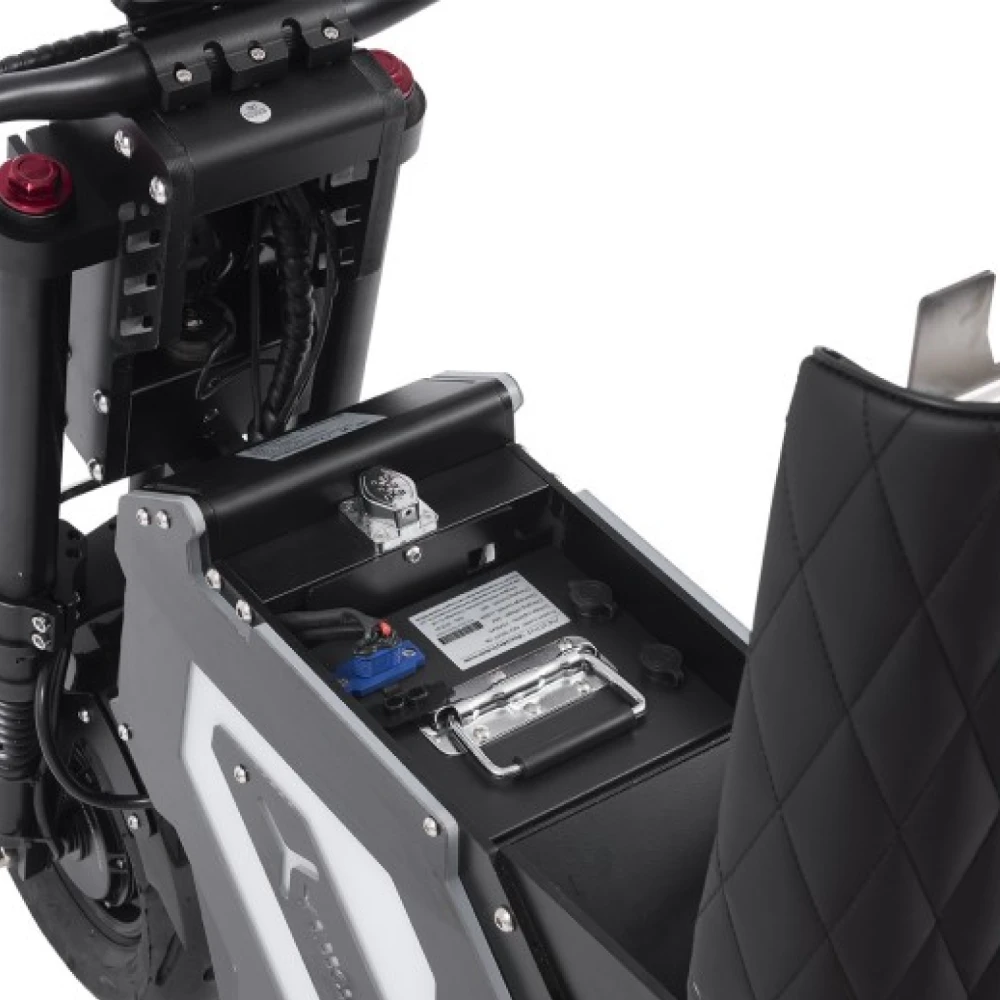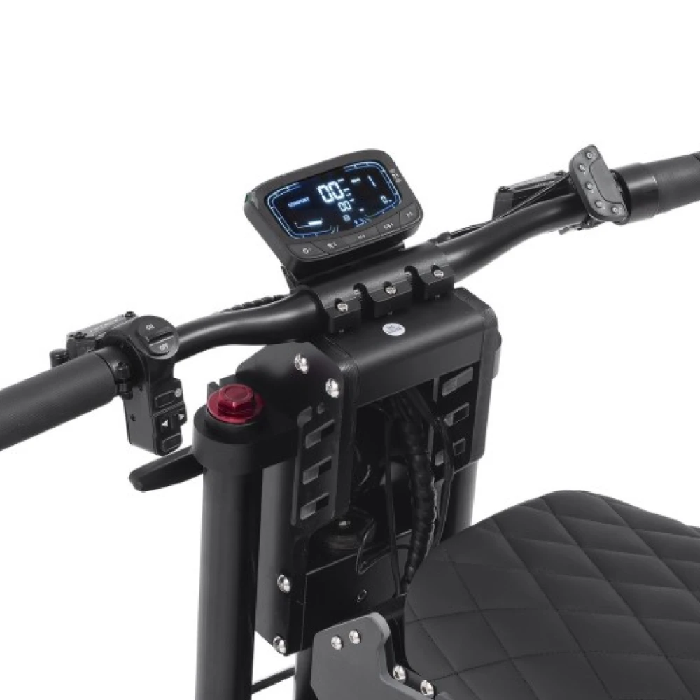 А ещё — гидравлические дисковые тормоза, пневматические колёса 13 дюймов, управление газом с ручки — всё, чтобы ты чувствовал не просто комфорт, а абсолютную уверенность.