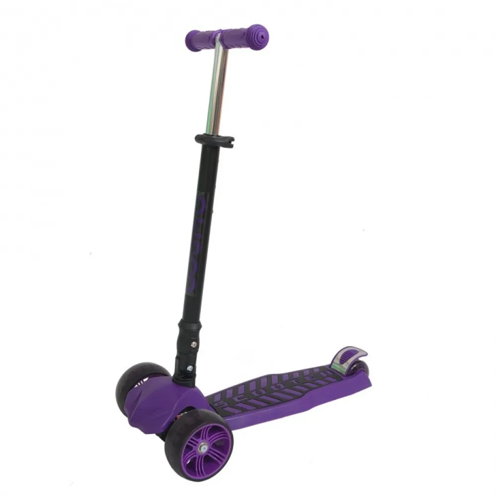 Управлять самокатом очень легко, наклоняя руль в нужную сторону. Ножной тормоз установлен на заднее колесо. С ним гарантируется моментальное торможение и безопасность катания. Колеса изготовлены из полиуретана, что обеспечивает их долговечность, делает движение плавным, смягчает неровности дороги. Также в них расположены светодиоды, которые ярко светятся при движении. За счет трех колес самокат очень устойчивый – он идеально подойдет для первого самоката малыша. Что касается размера колес, то диаметр передних составляет 120 мм, а заднего колеса – 90 мм.