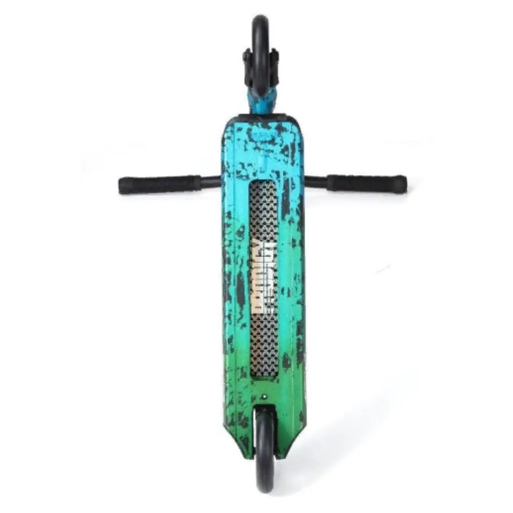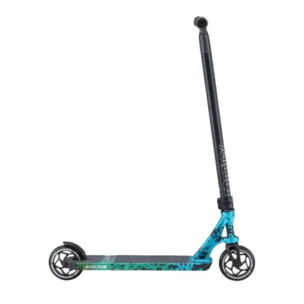 Модель изготовлена из облегченного высокопрочного алюминия, благодаря которому масса техники составляет 3,48 кг. Технические характеристики металла позволяют выдерживать нагрузку до 100 кг с учетом силы прыжка. Трюкачи считают самокат лучшим достижением производителя. Удобная форма руля не провоцирует усталости и дискомфорта. Высота составляет 780 мм.