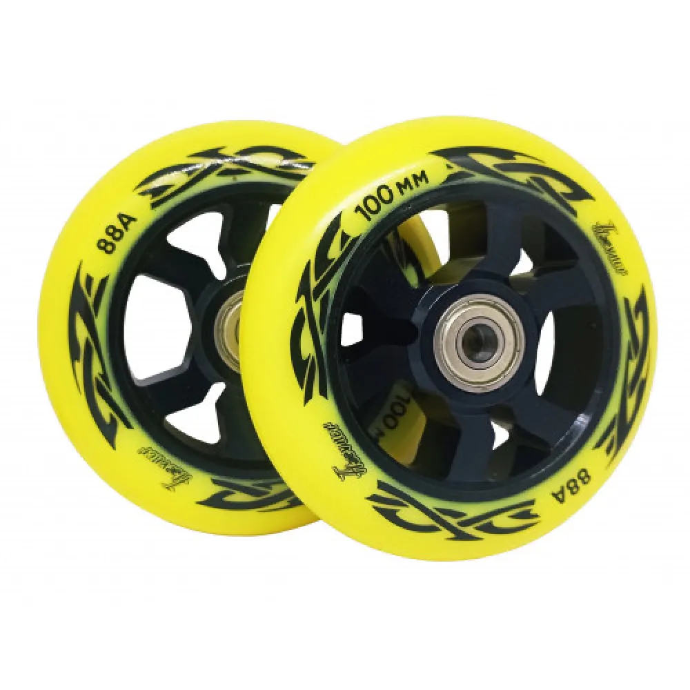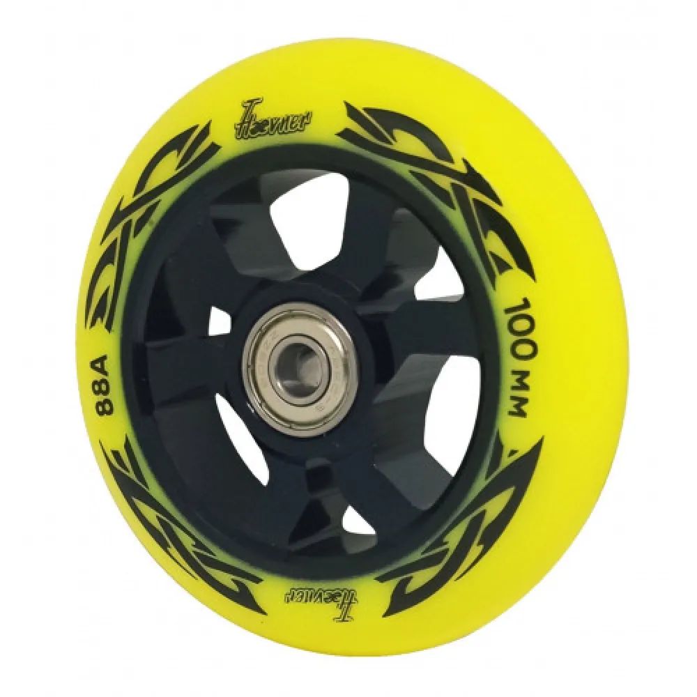Колесо для трюкового самоката Haevner алюминиевое (100мм/ABEC 9) черно-желтый